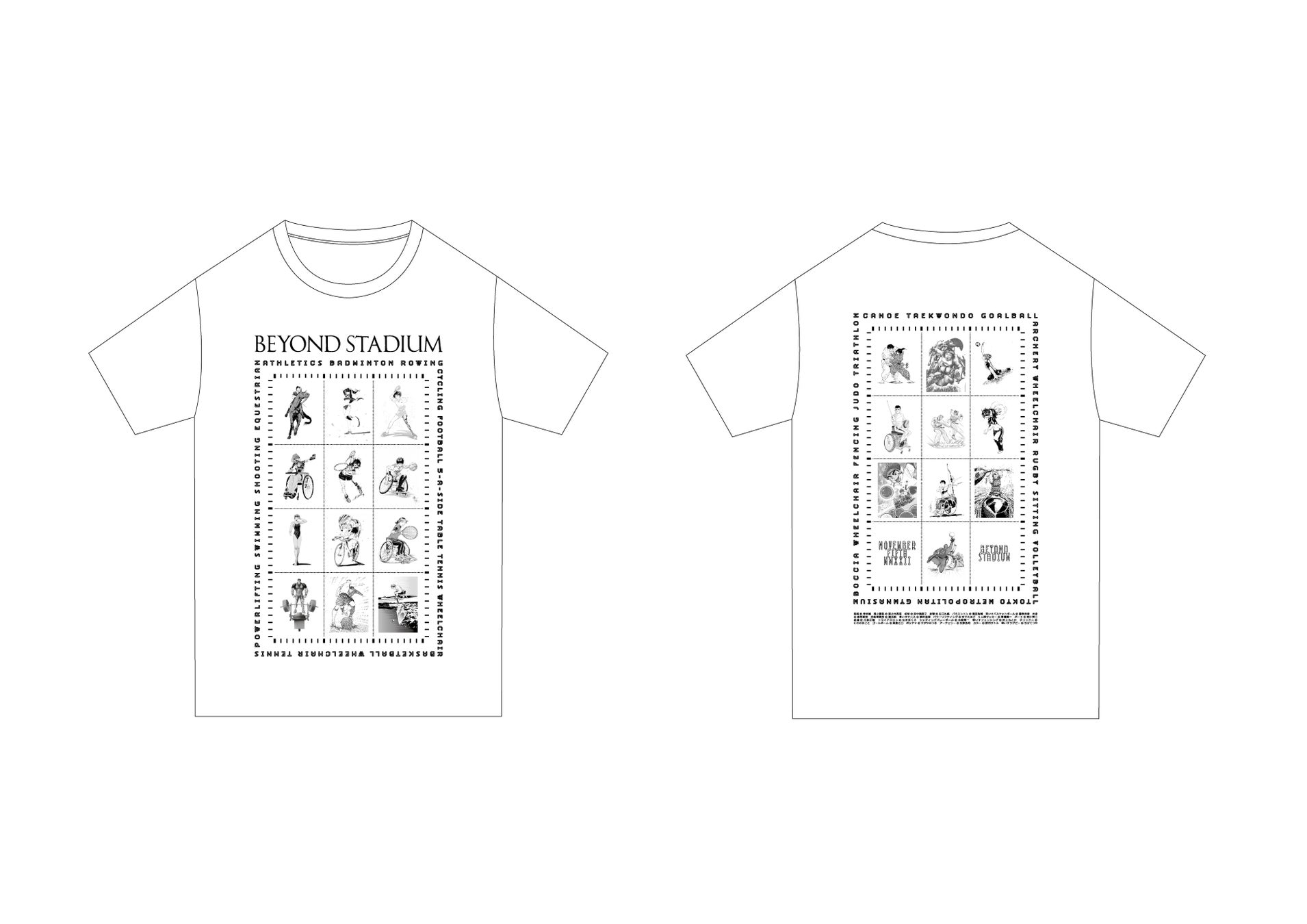 日本を代表する漫画家たちが描いたイラストがデザインされたTシャツは、イベント限定の非売品です。パラアートをデザインに起用したTシャツは、パラアーティストさくらゆきさんの作品「ねこのおさんぽ」をメインデザインに、バックスタイルには東京2020パラリンピックの競技名全22種を列挙しています。イベント当日、出演者やスタッフがオリジナルTシャツを着用することで、一体感を創出し、イベントへの注目度の向上を目指します。