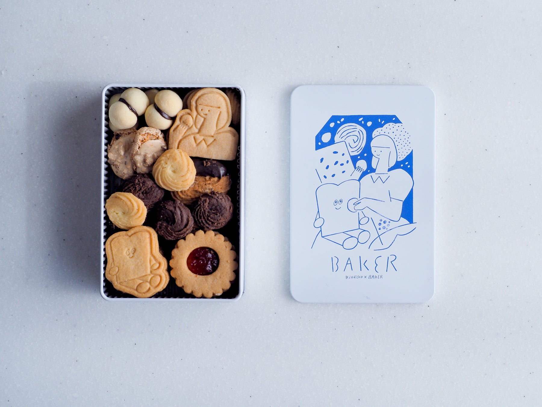 兵庫県芦屋市にある製菓・製パン所。イラストレーターのkilldiscoさんとのコラボレーションクッキー缶です。今回のために考案したクッキーなどチョコづくしのバレンタイン限定焼き菓子9種を。