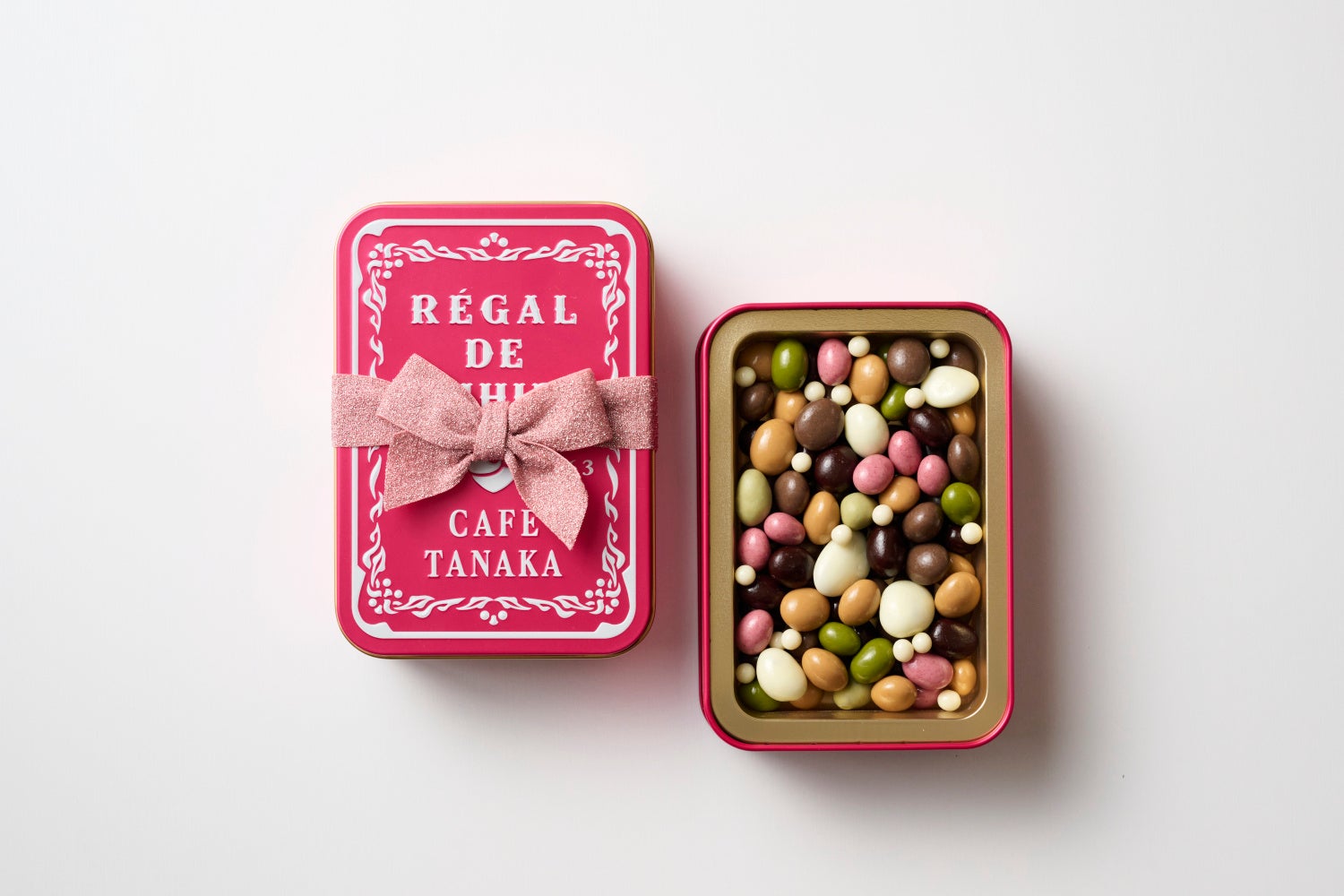 チョコレートのトッピングを集めて、フランボワーズのハートをプラスした期間限定のバレンタインクッキー缶。