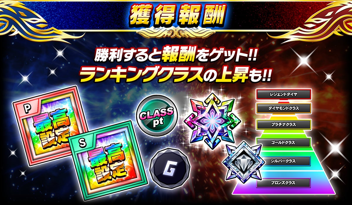 クラスは週ごとに昇降格・維持されます。「パチロワ」を遊んで目指せ!最上位クラス!