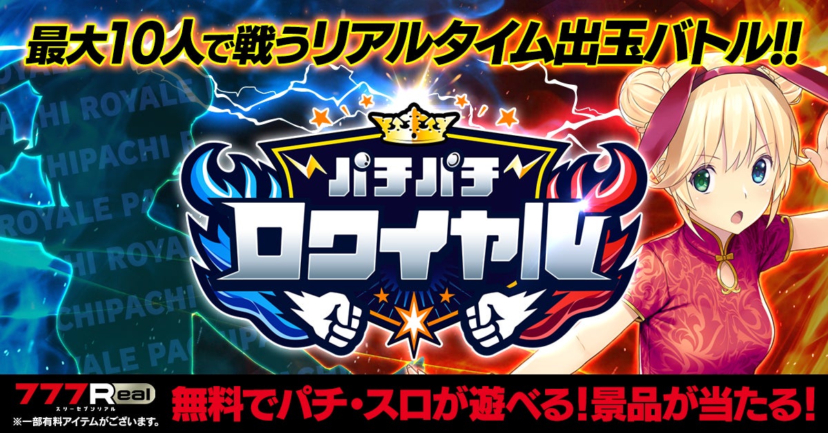 最大10人で戦うリアルタイム出玉バトル「パチパチロワイヤル」無料ぱちんこ・パチスロアプリ「777Real」に新登場!