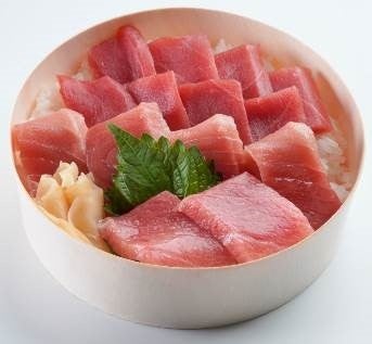 本マグロの赤身、中ト天然本鮪の赤身、中トロ、大トロを贅沢にのせた、仲卸の鈴富ならではの一品です。