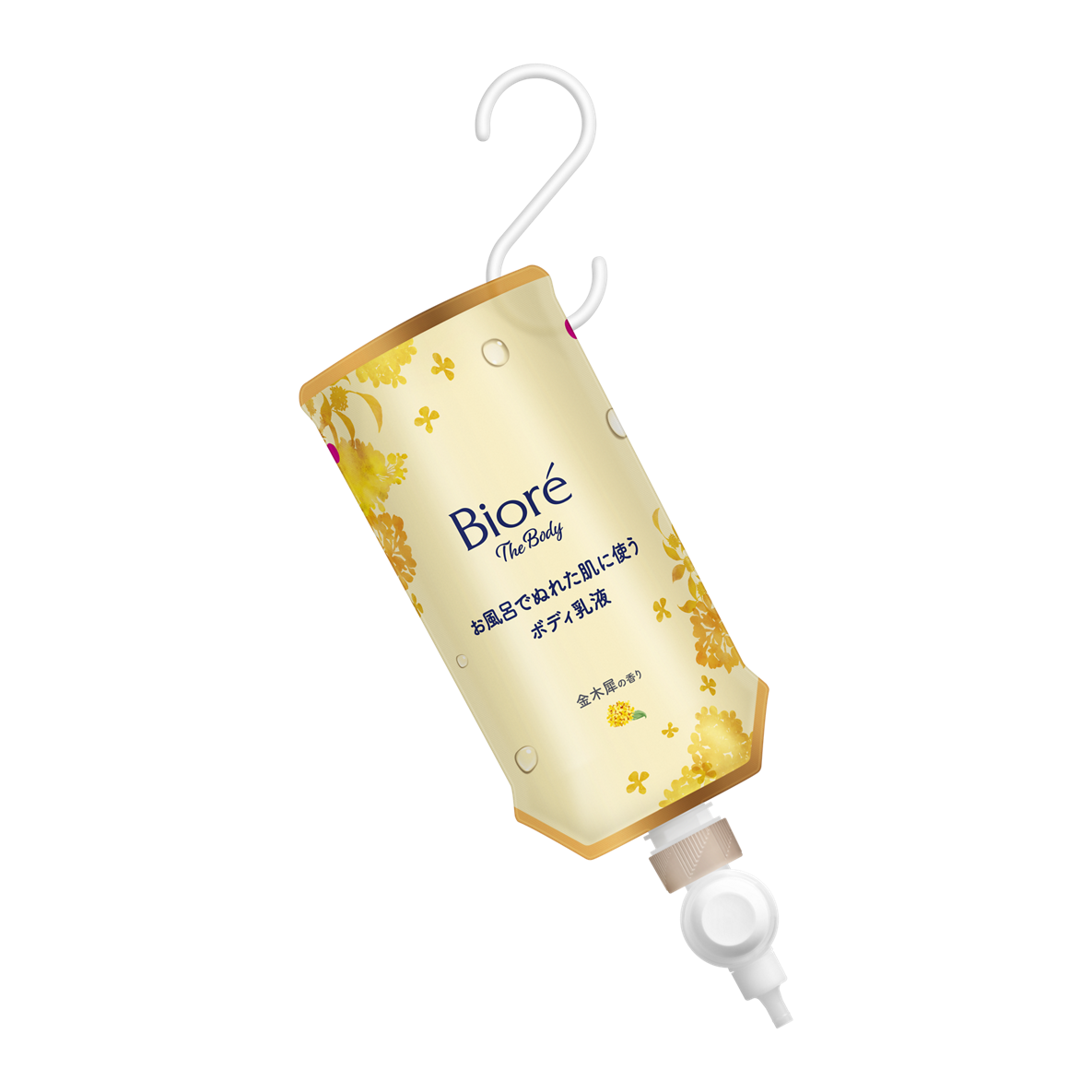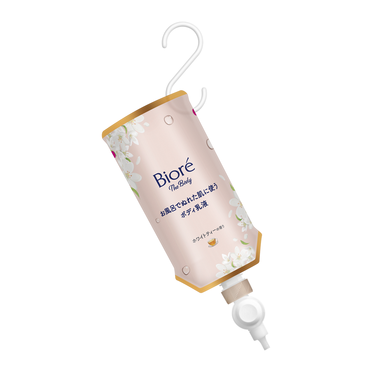 また、浴室内で立ったまま使える“つりさげパック“のため手早くボディケアができ、無理なく続けられるので、これまでボディケアがなかなか習慣化しなかった方にもおすすめです。お風呂の中でぬれた肌に使うことで、ボディケアの習慣化をより一層促進し、乾燥が気になる季節も心地よい時間をサポートします。