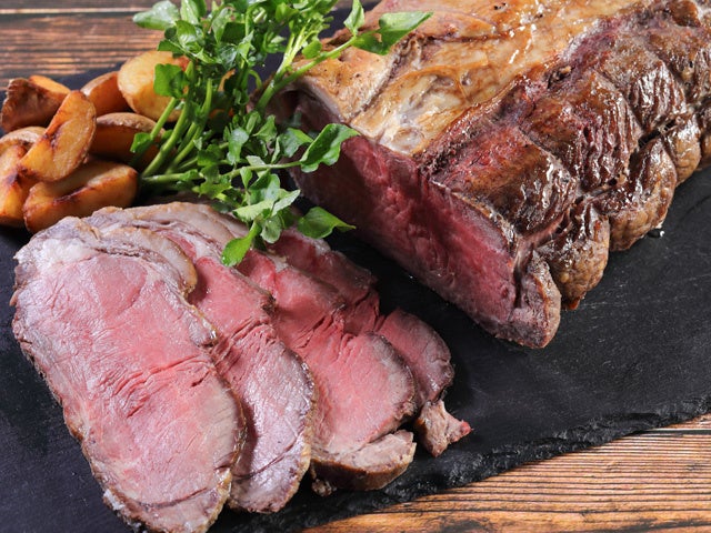 HOT料理は、「USサーロインのローストビーフ 赤ワインソース レフォール添え」。柔らかくジューシーに焼き上げたUSサーロインを、コク深い赤ワインソースで仕上げました。爽やかな辛みのレフォールがアクセントとなり、絶妙なハーモニーを楽しめる一皿です。スタッフが出来立てをお席までお届けします。
