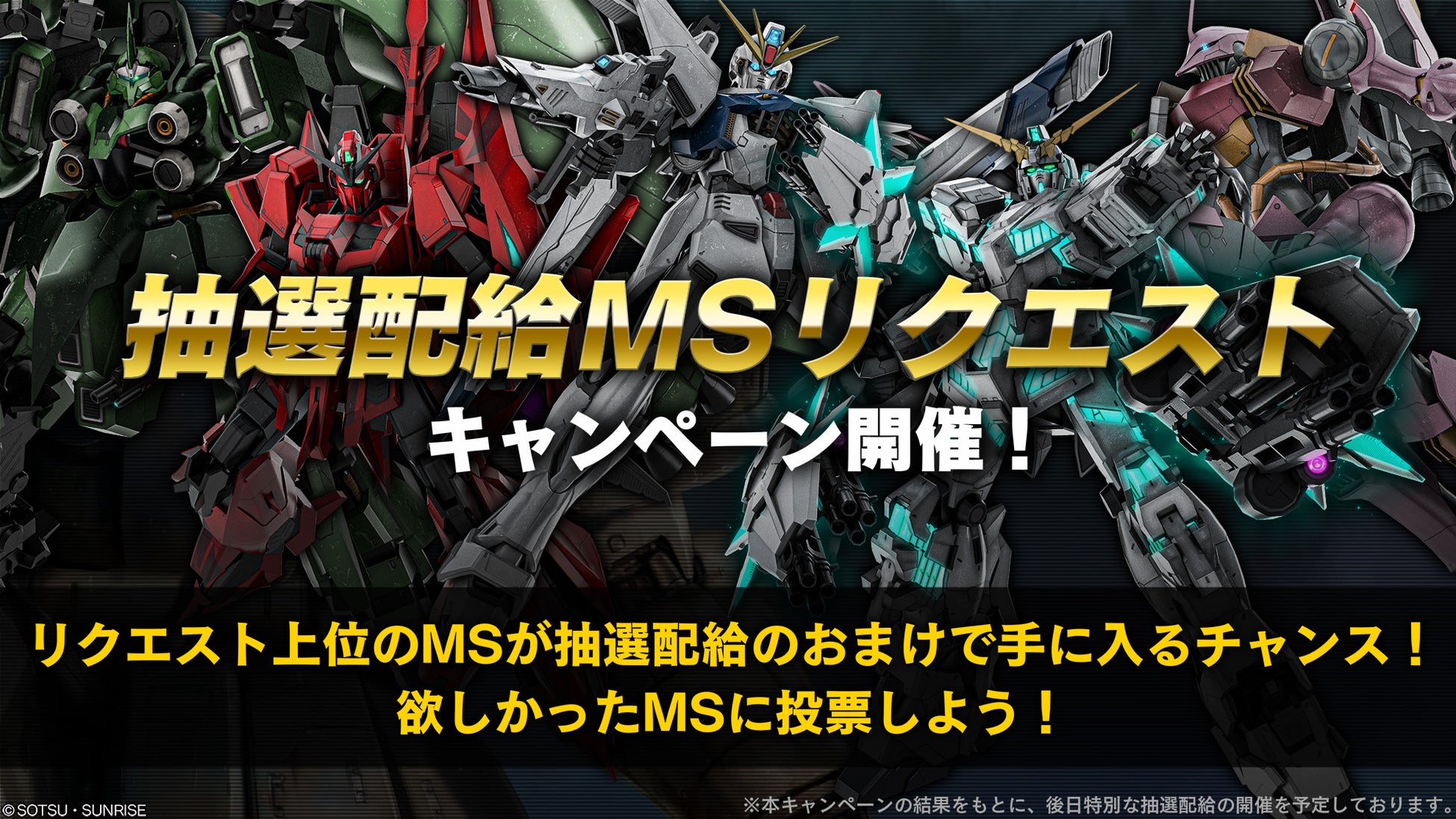 1日1回欲しいMSをリクエストする、「抽選配給MSリクエストキャンペーン!」を今年も開催いたします。