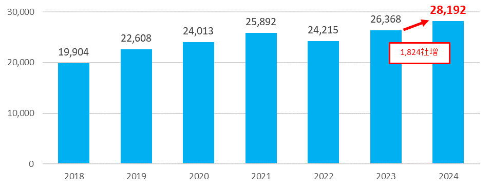 - 2023年3月1日時点の掲載社数は過去最高の2万8,192社(前年比1,824社増)【図1】