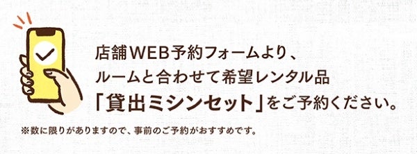 ・ 貸し出し機材表記以外の縫製用品については、各自ご持参ください。ミシン針は付属しております。