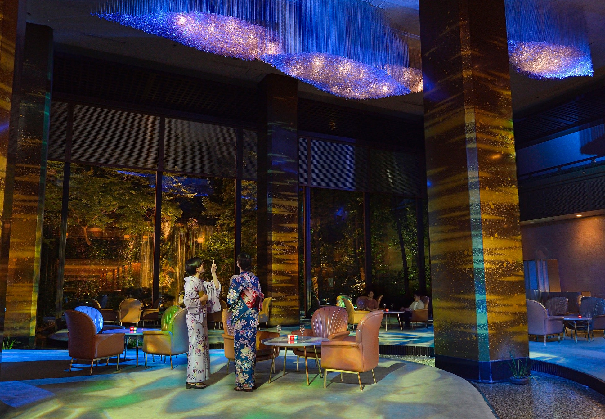 また、店内を流れる曲水や、天井のシャンデリアを7・8月の金曜日・土曜日の夜限定でライトアップし、幻想的な光をまとった日本の伝統美溢れる和空間で、優美な週末の夜をお愉しみいただける演出を今夏も実施。夏夜に浮かび上がる“天の川”の如く煌めくのは、庭園の滝壷へと注ぐ、曲水の宴を模した水の回廊。天井の“紫雲”をイメージした約25万個のクリスタルガラスが輝くシャンデリアからは、柔らかい光が零れます。すっかり夏色に染まった景観とともに、優雅なジャズの生演奏もご堪能いただけます。夏の夜をお楽しみいただけるフードやドリンクも充実。