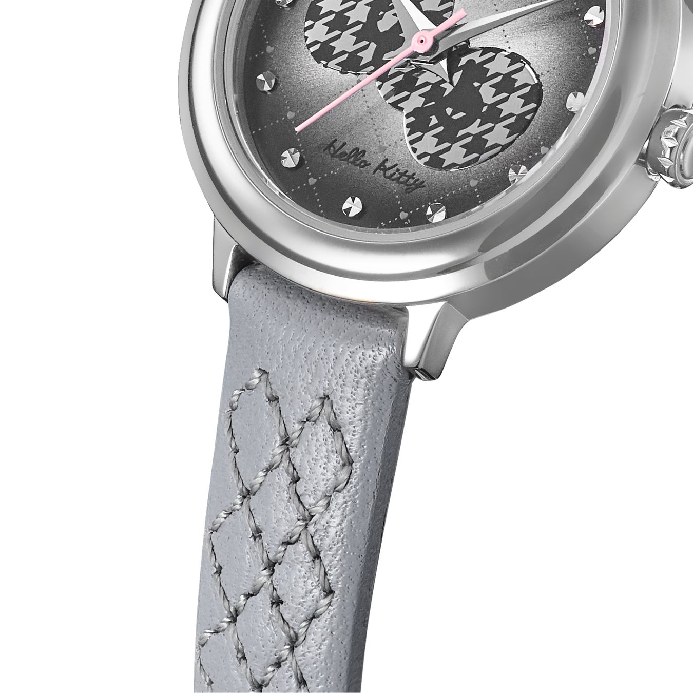 文字盤の中央に大人かわいい千鳥格子柄のリボンを配置。インデックスにはクリスタルを施し、秒針にはベビーピンクカラーを採用しました。