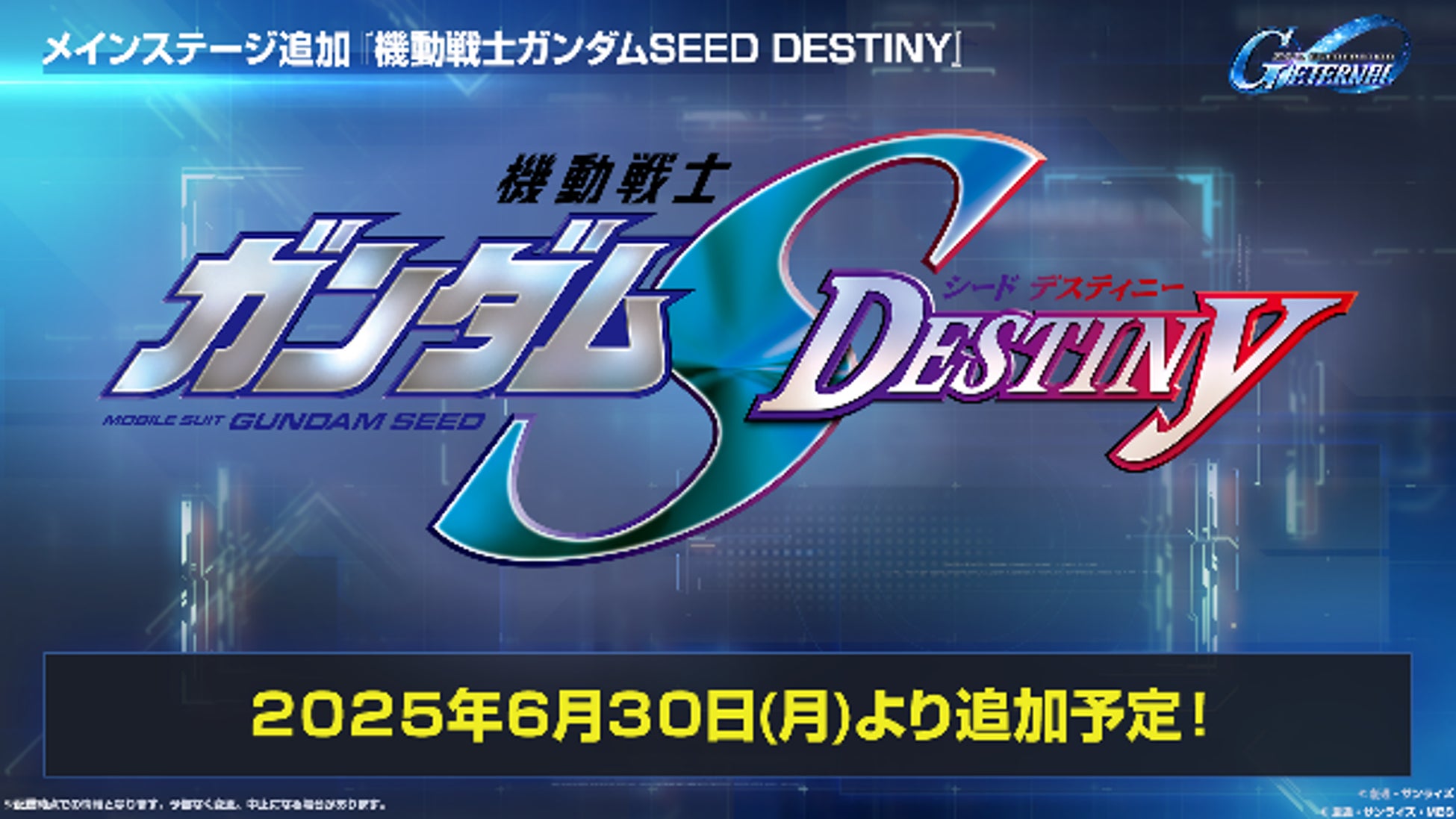 6月30日より、メインステージに「機動戦士ガンダムSEED DESTINY」、さらに「機動戦士ガンダム 逆襲のシャア」が追加される予定です。