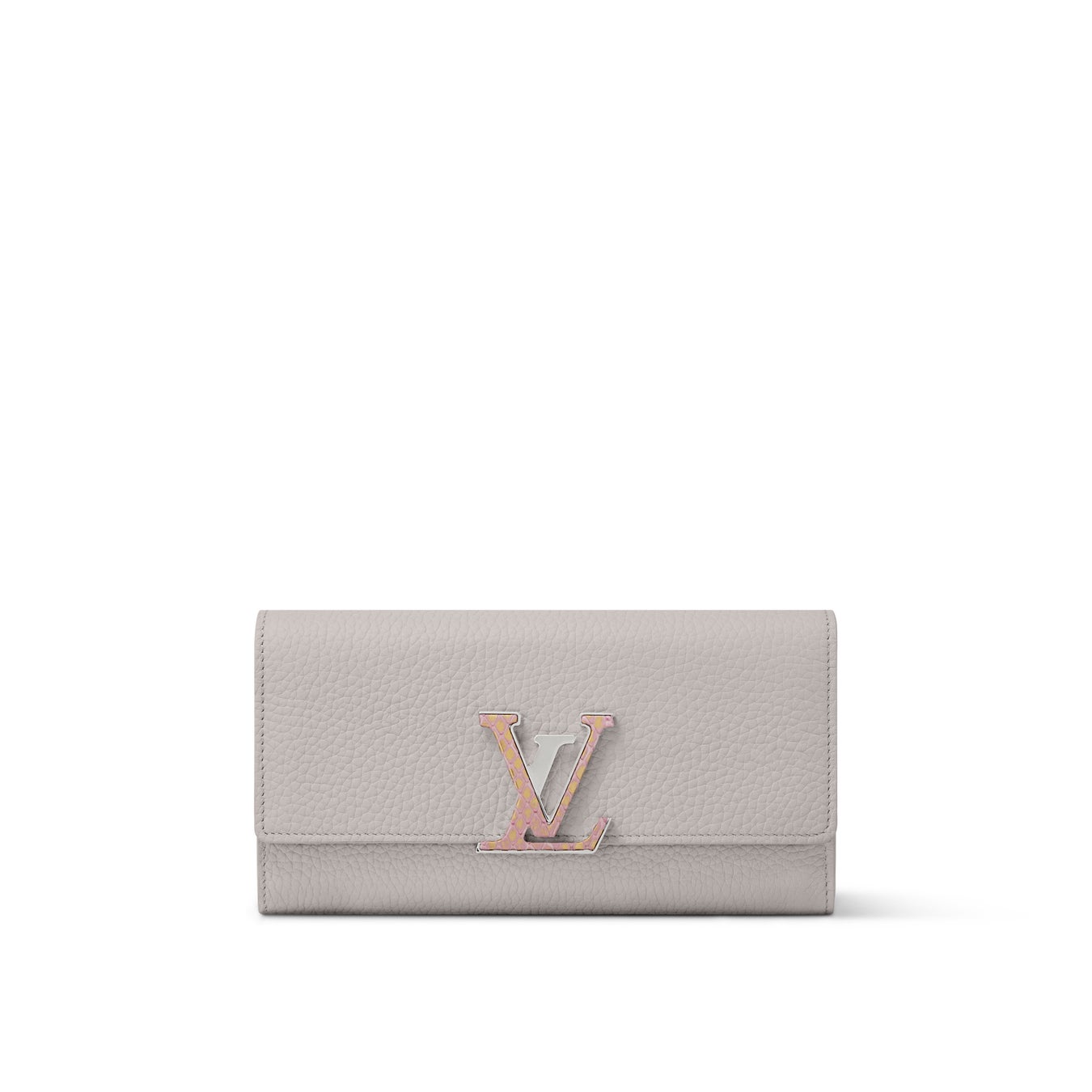 エレガントな「ポルトフォイユ·カプシーヌ」は、メゾンを象徴するLV イニシャルにユニークなパイソンレザーのトリミングを施してアクセントを効かせました。トリヨンレザーを使用し、複数のポケットやカードスロット、コンパートメントなどを備えた収納力抜群のアイテムです。シルバーカラーの金具で洗練された仕上がりに。