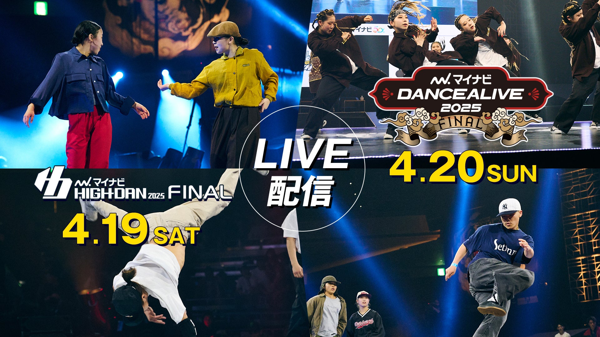 フジテレビが運営する動画配信サービスFODにて、高校ダンス界の頂点を競う『マイナビHIGH SHCOOL DANCE COMPETITION 2025 FINAL』と、1on1形式のバトルで真の最強を決める『マイナビDANCEALIVE 2025 FINAL』を4月19日(土)と20日(日)にライブ配信することが決定しました。