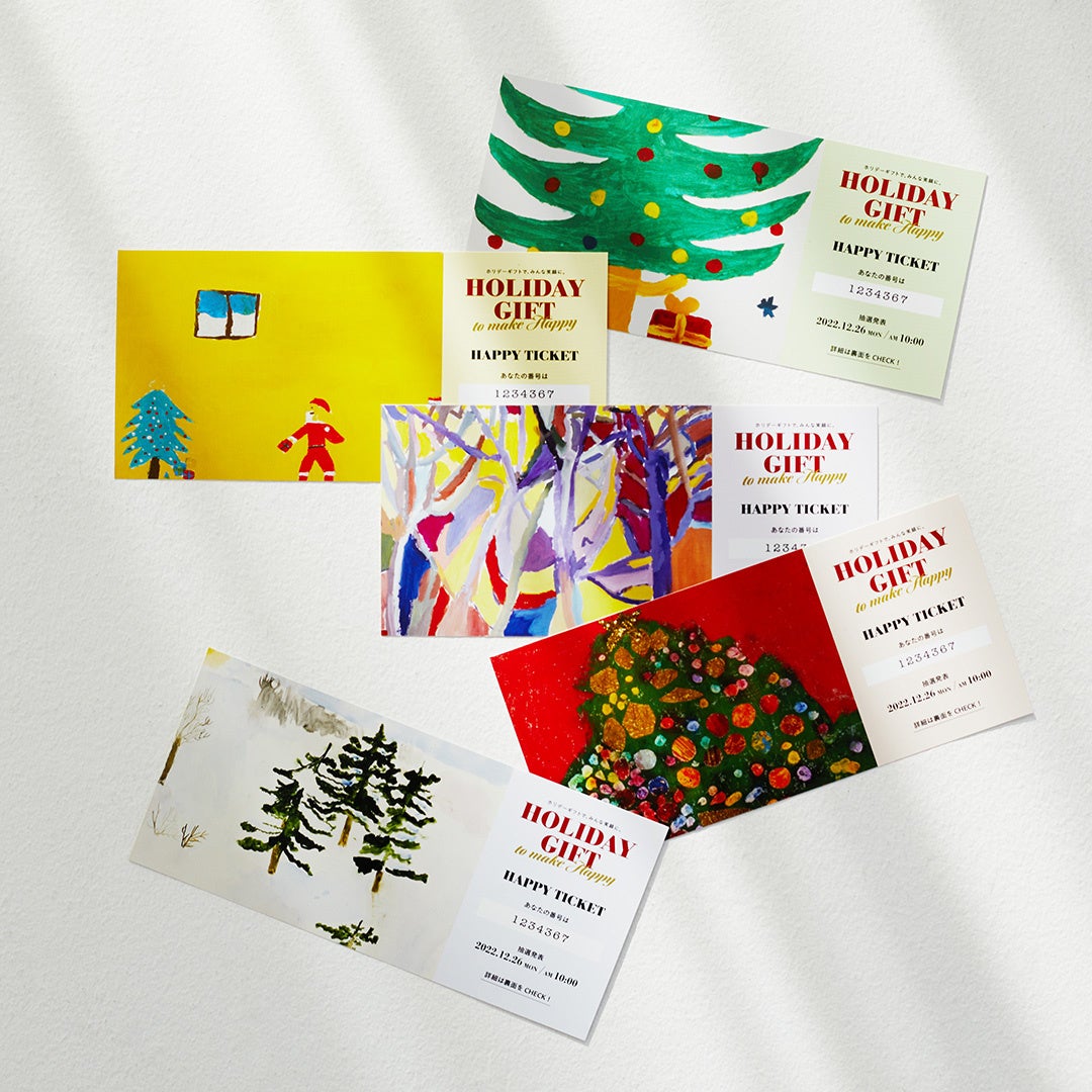 2022年のクリスマスキャンペーンのテーマは「HOLIDAY GIFT to make Happy ホリデーギフトでみんな笑顔に。」。大切な人のことを考えてギフトを選んでいるときに心が踊ったり、ギフトを贈る相手にあなたの気持ちが伝わったりしますように。そして、ご家族やご友人、大切な人と一緒に、素敵な時間を過ごしてほしい、という想いを込めたキャンペーンを11月18日(金)より開始します。このキャンペーンでは、ツリーやサンタクロースなどの全5種のイラストをプリントしたサテンリボンに、メッセージカードを添えたクリスマス限定デザインのギフトラッピングを数量限定で提供いたします。