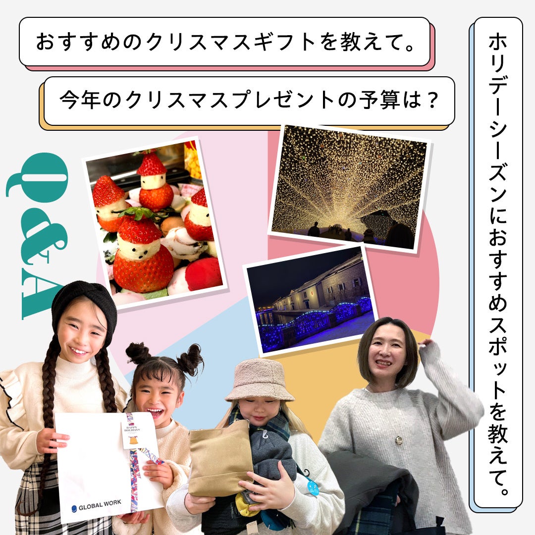 全国のグローバルワーク店舗スタッフ200名にクリスマスの実態をアンケート。今年のクリスマスギフトや、ホリデーシーズンに大切な人と過ごす計画づくりに役立てる内容となります。12月8日(木)に特設WEBサイトにて公開予定。