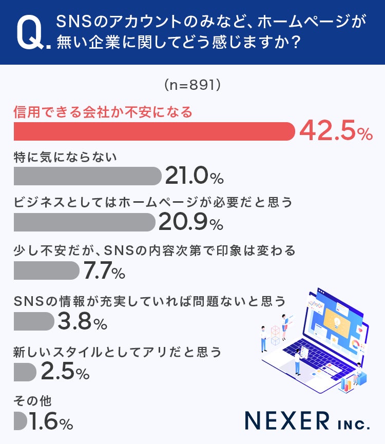 【HPは重要!】42.5%が、ホームページが無いと「信用できる会社か不安になる」と回答