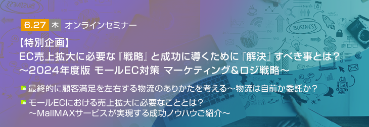 【トランスコスモスオンラインセミナー】特別企画 EC売上拡大に必要な『戦略』と成功に導くために『解決』すべき事とは?~2024年度版 モールEC対策 マーケティング&ロジ戦略~を6/27(木)に開催