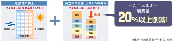 ※2.地域ごとに設定された外皮の断熱性能の基準をクリアし、高効率な設備やシステムの導入により室内環境の質を維持しつつ一次エネルギー消費量を20%以上削減した集合住宅のこと。政府の方針で6階以上はZEH-M Orientedを目指すものとされている。