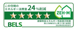 加えて、本物件は、秋田県では初(※1)の「ZEH-M Oriented」(※2)仕様とし、建築物省エネルギー性能表示制度「BELS」による第三者認証で最高等級を取得しました。