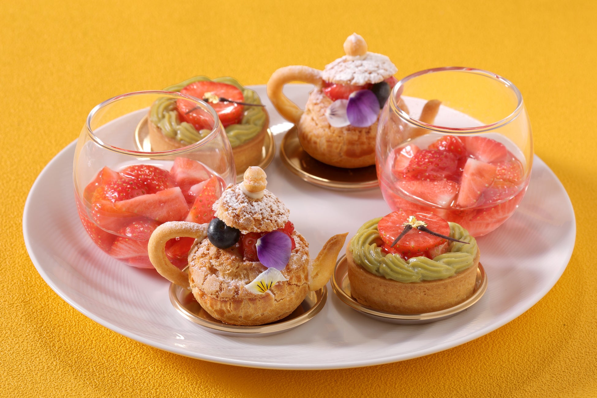プリンセスのドレス風 柑橘ゼリー / ビースト ~いちごと紅茶のムース~ / キャンドル ショートケーキ / いちごとバラのマカロン