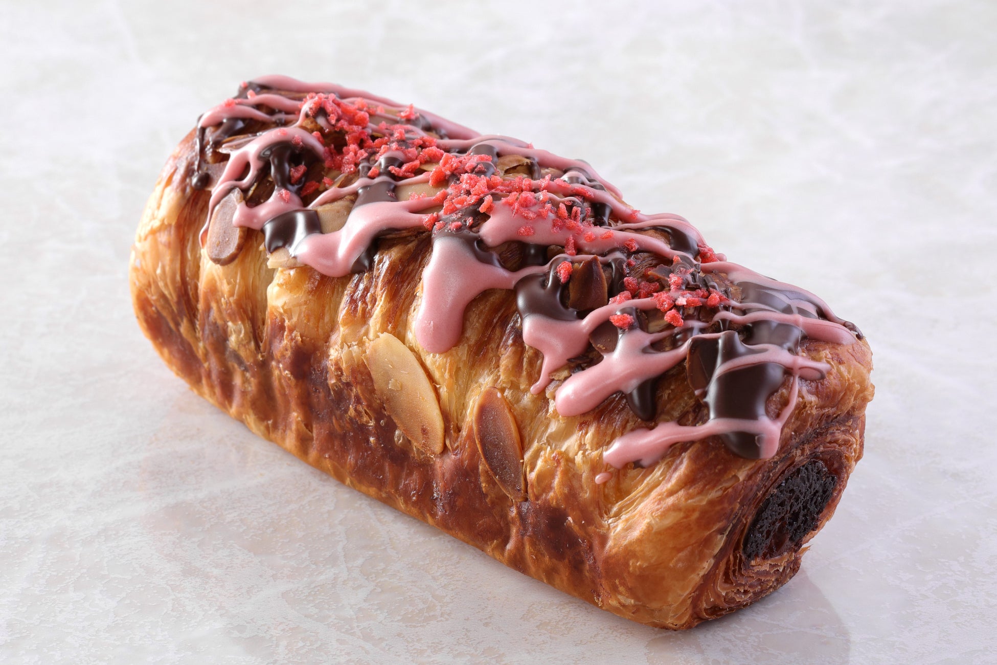 デニッシュ生地でいちごフレーバーのチョコレートクリームを包み、スライスアーモンドをトッピングしました。香ばしいアーモンドチョコと甘酸っぱいいちごが絶妙な、毎年人気のデニッシュです。