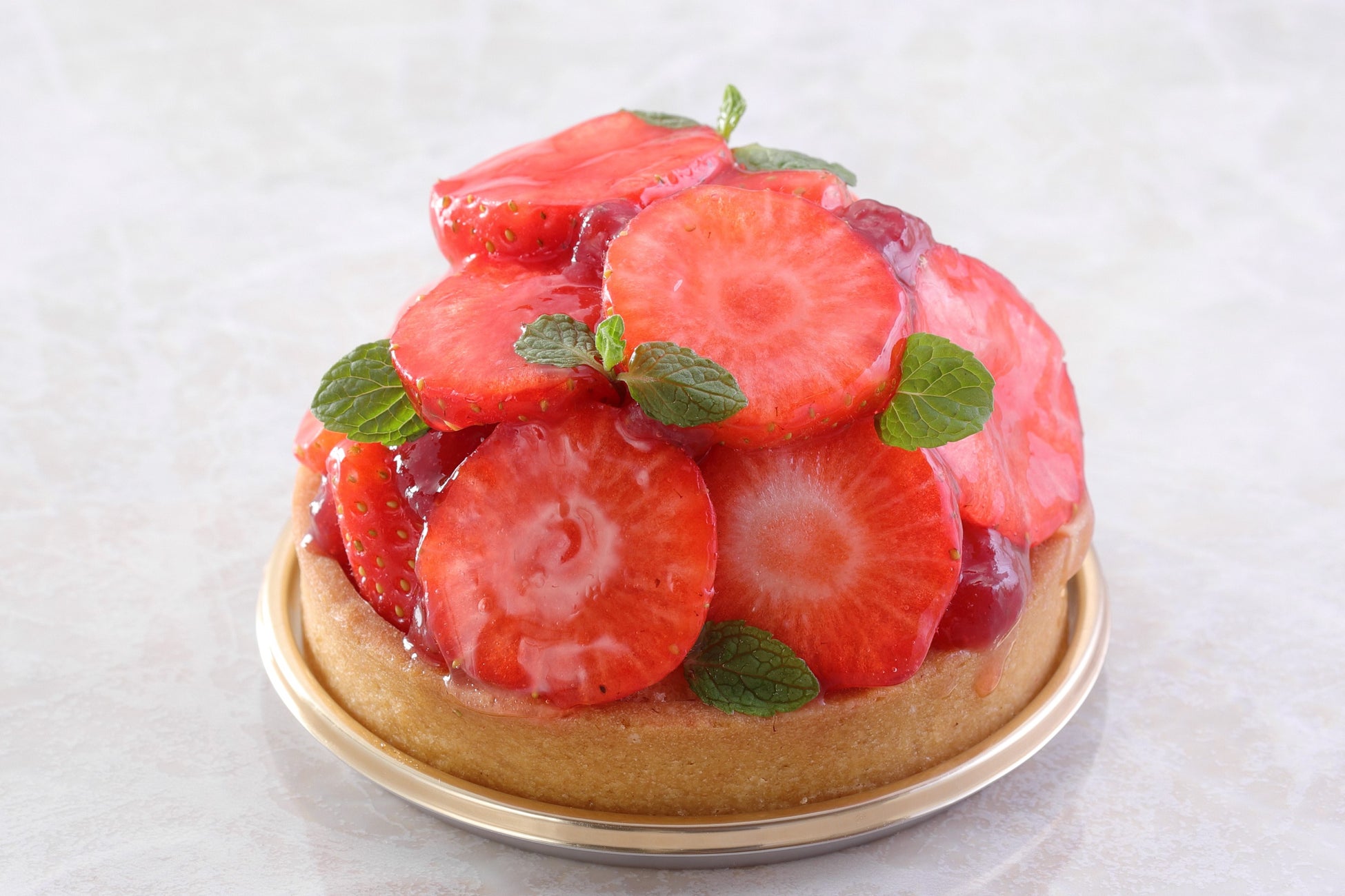 風味豊かなアーモンドタルト生地に甘酸っぱいいちごジャムを入れ、あっさりとしたカスタードクリームといちごをトッピングしました。