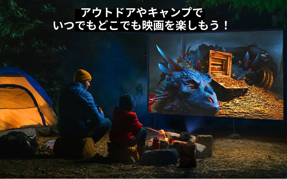 - 使いたい時に大画面を楽しもう。アウトドアから室内で見たい空間に投影