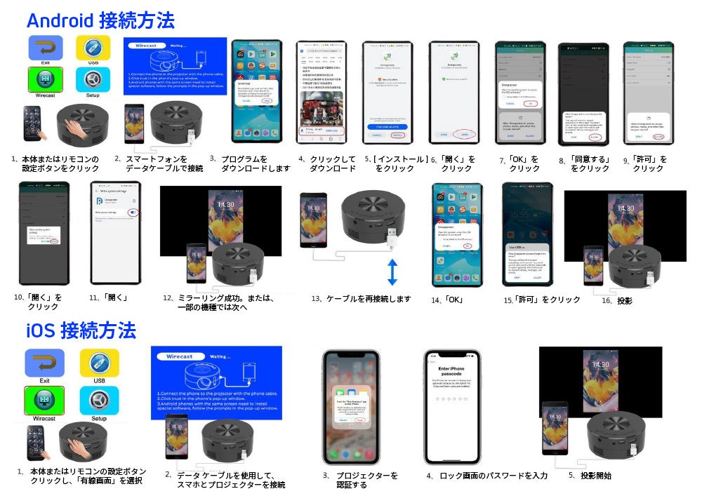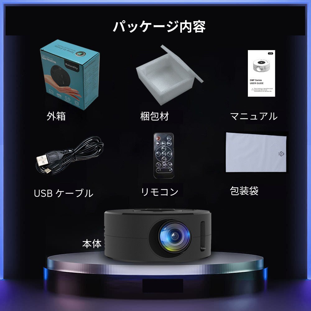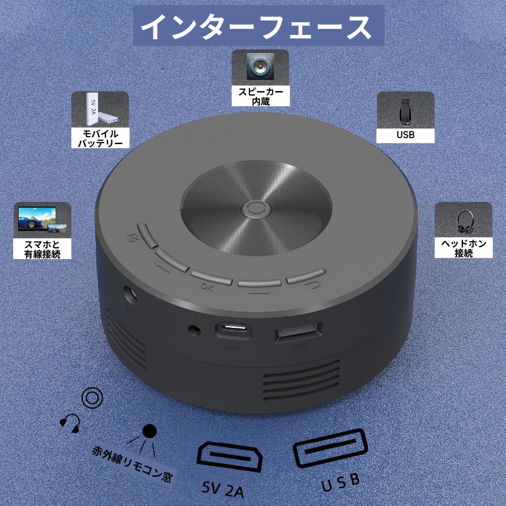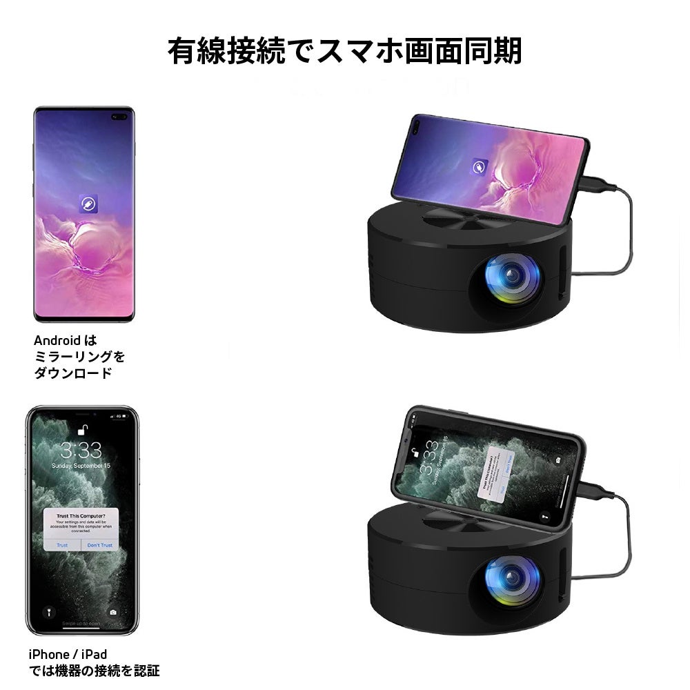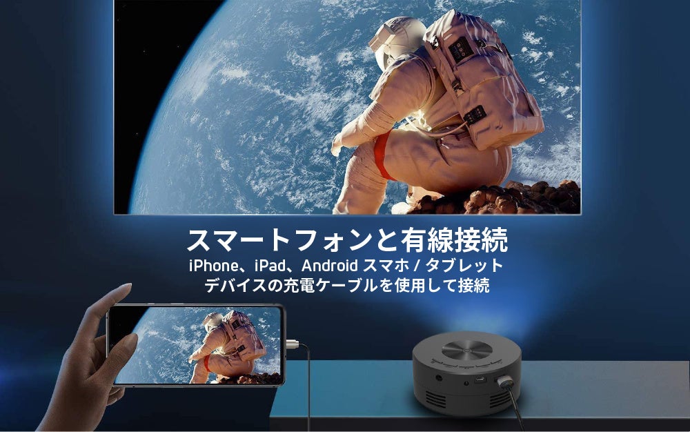 iPhone、iPad、Android有線接続/最大100インチ投影/1080P/MicroUSB給電
