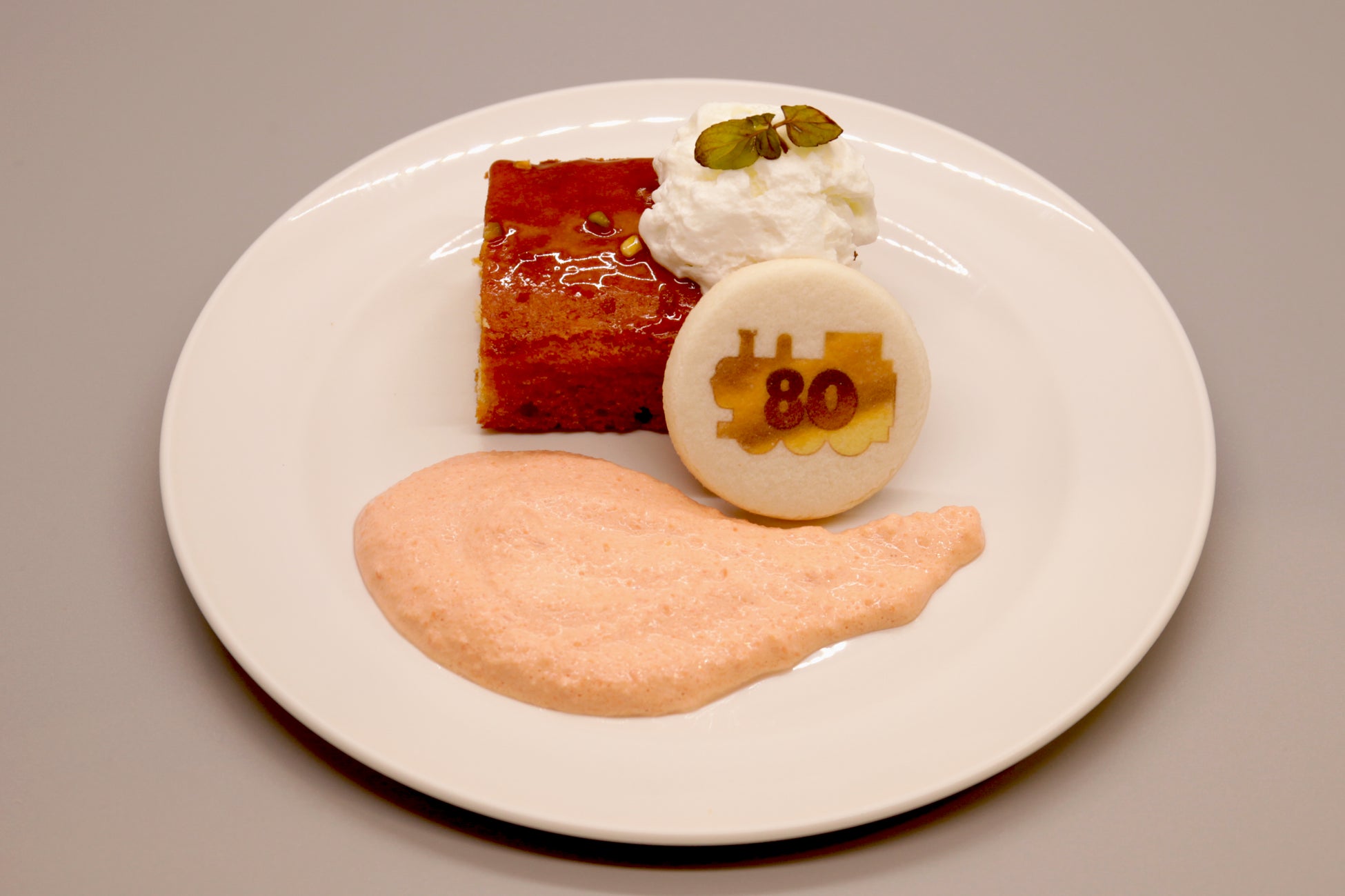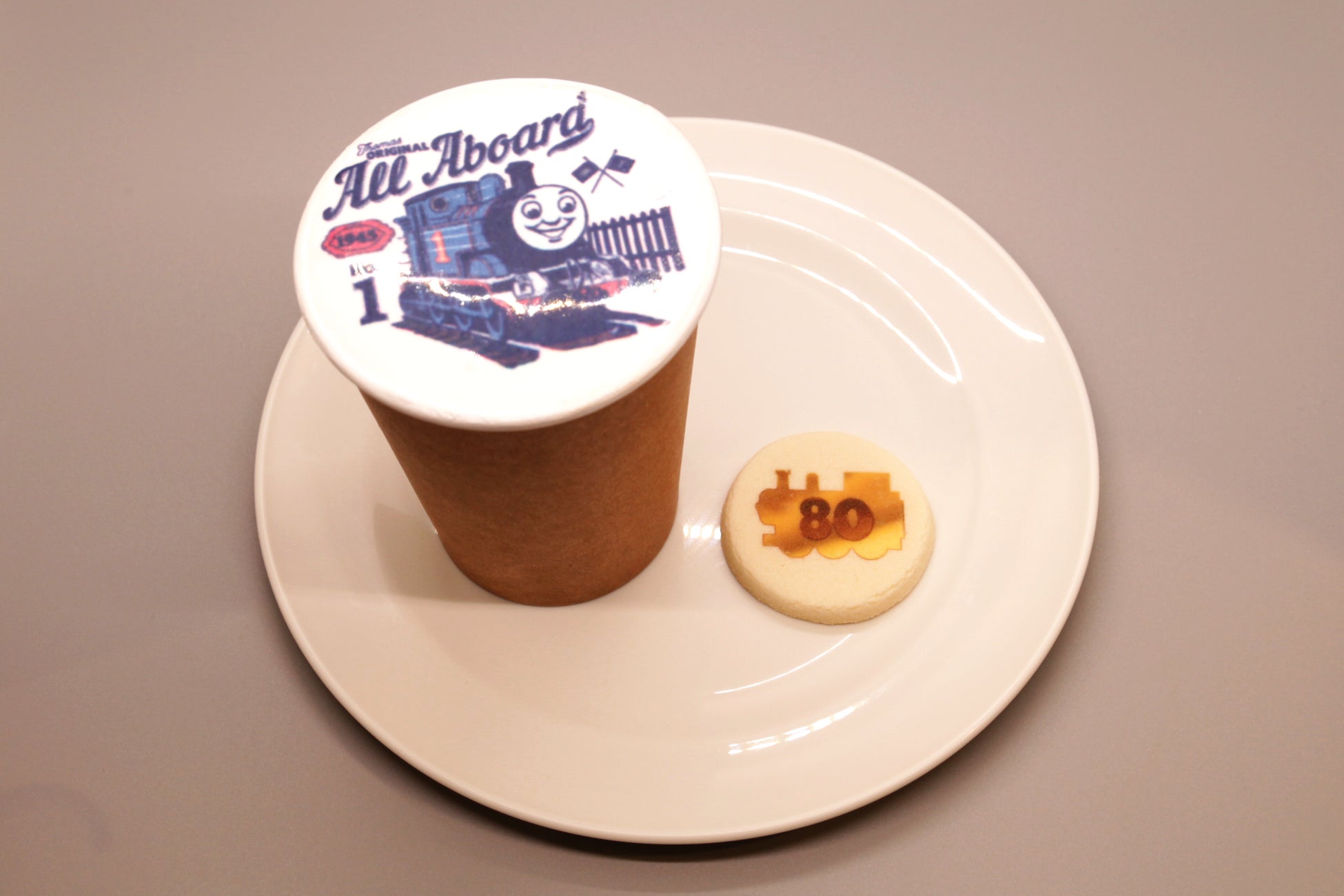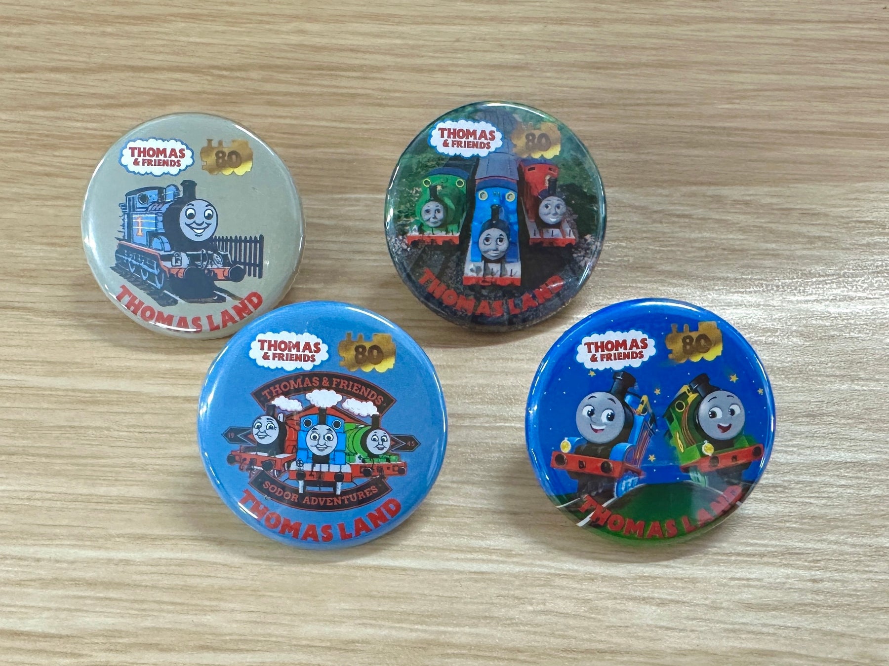 トーマスレストランでは原作出版80周年を記念した2種類のメニューを販売します。また、記念メニューご注文の方には歴代のトーマスとなかまたちが描かれたオリジナル缶バッジをプレゼントします。