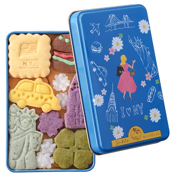 世界の国、都市をテーマにしたサブレ缶です。可愛らしいデザインの小さな缶にそれぞれの国、都市にちなんだモチーフのサブレが入ります。ブランドのイメージキャラクターのミシェルが世界を旅して見た美しい花と景色、食べ物など、大切な旅の思い出を小さな可愛らしい缶にギュッと詰め込みました。種類は全16種類となります。缶のパッケージ、中身の種類もそれぞれ異なった、ブランドを象徴するメイン商品になります。