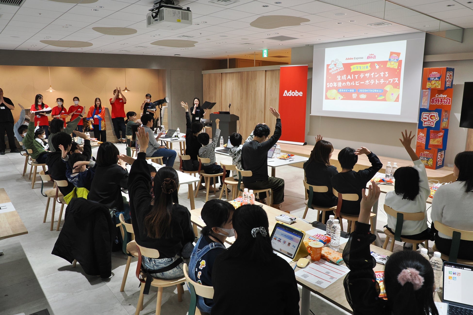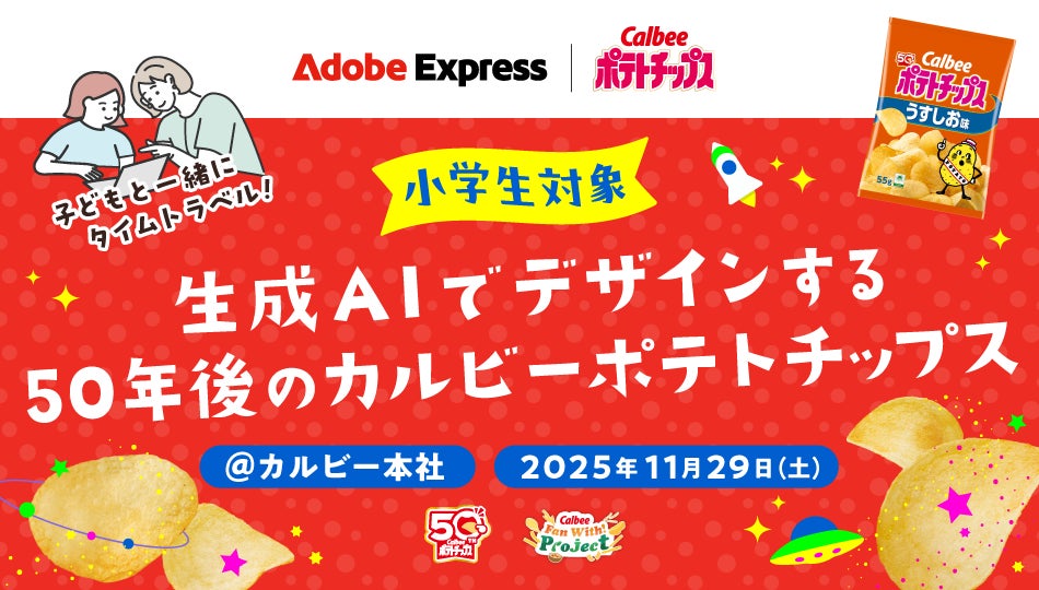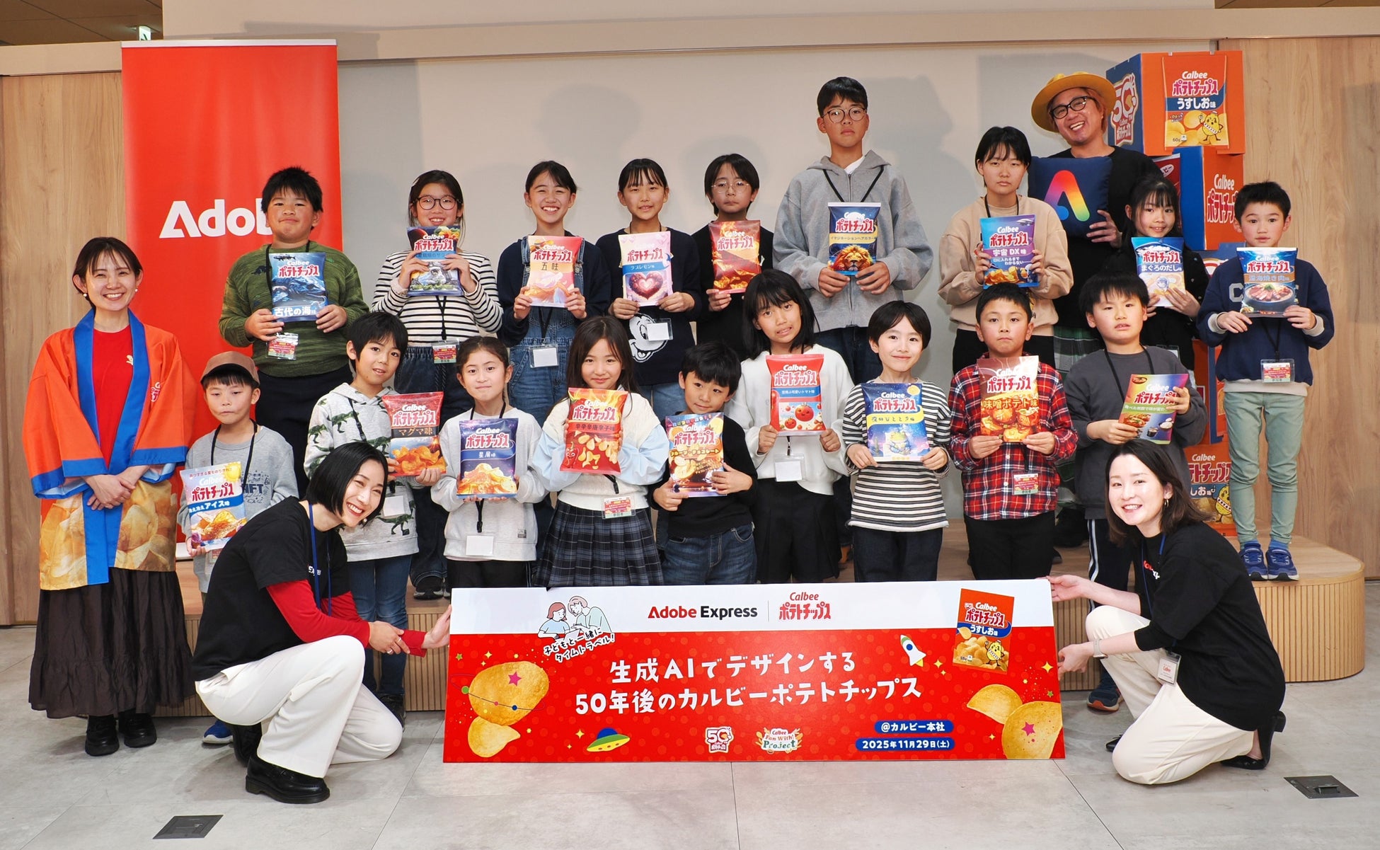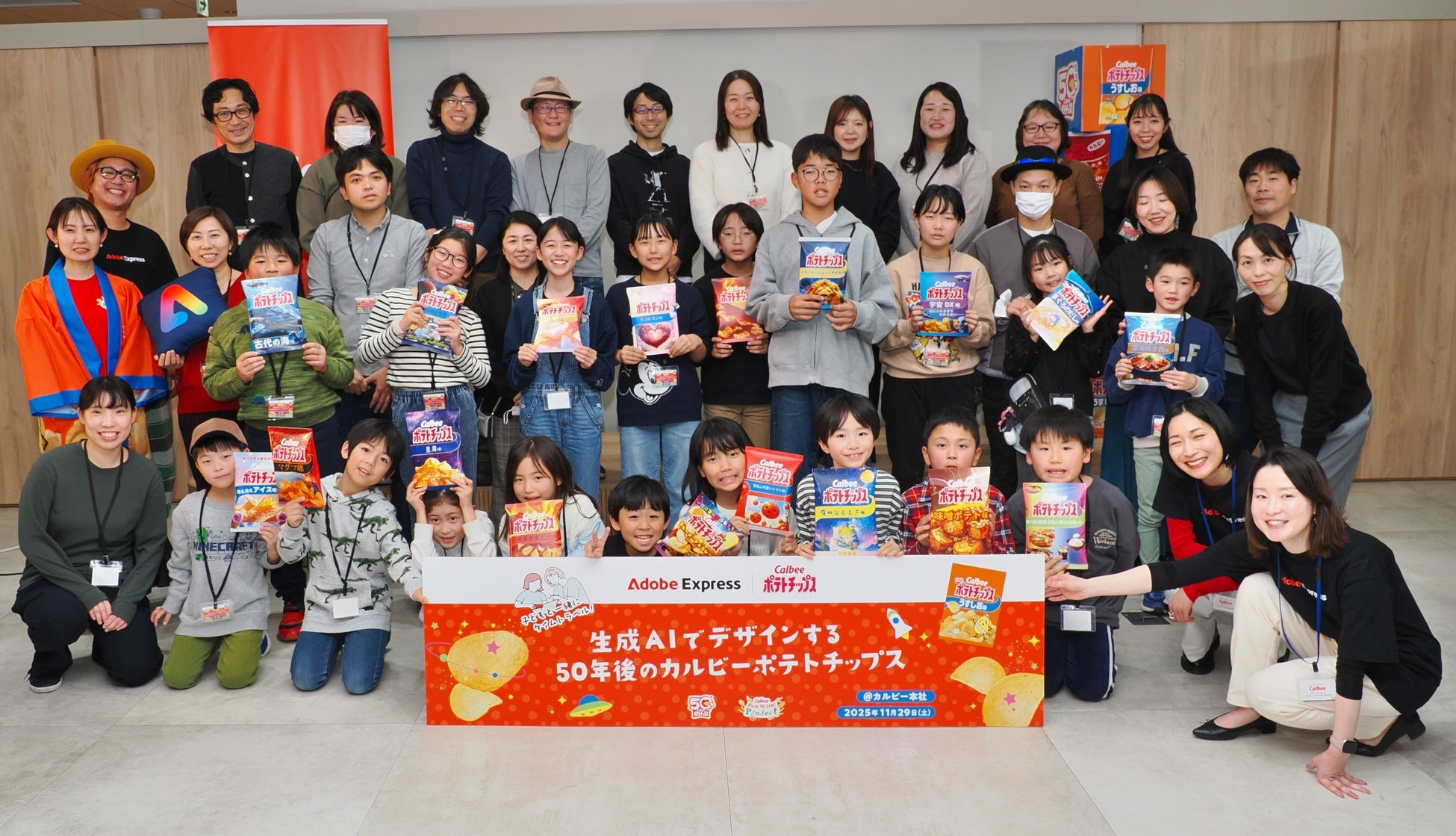 カルビー株式会社(本社:東京都千代田区、代表取締役社長兼CEO:江原 信)とアドビ株式会社(本社:東京都品川区、社長:マニンダー ソーニー、以下アドビ)は、2025年11月29日(土)に、「カルビーポテトチップス」の発売50周年を記念し、親子向けのワークショップ『“子どもと一緒にタイムトラベル!”生成AIでデザインする50年後のカルビーポテトチップス』(以下、本イベント)を東京都千代田区のカルビー本社で開催しましたので、お知らせします。