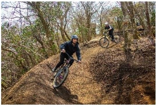 富士山の眺望が広がる高台へ登り、自然地形を活かした3つのセクションに挑戦可能。