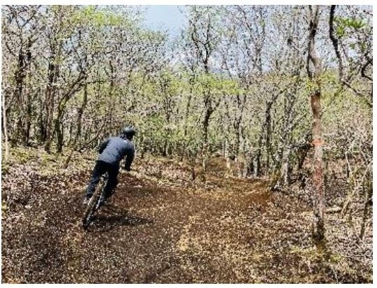 初心者から経験者まで楽しめる、本格コースです。ダイナミックな登り坂を駆け上がった先には、富士山の雄大な眺望が広がり、その後は自然の地形をそのまま利用したダウンヒルセクションへ。約1,200年前の噴火口の横を走るルートもあり、地球の鼓動を感じられるエキサイティングな体験をお楽しみいただけます。