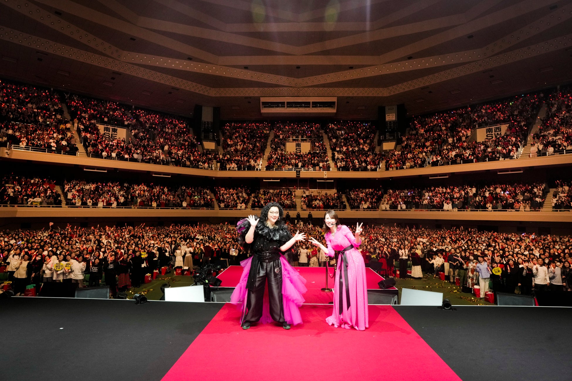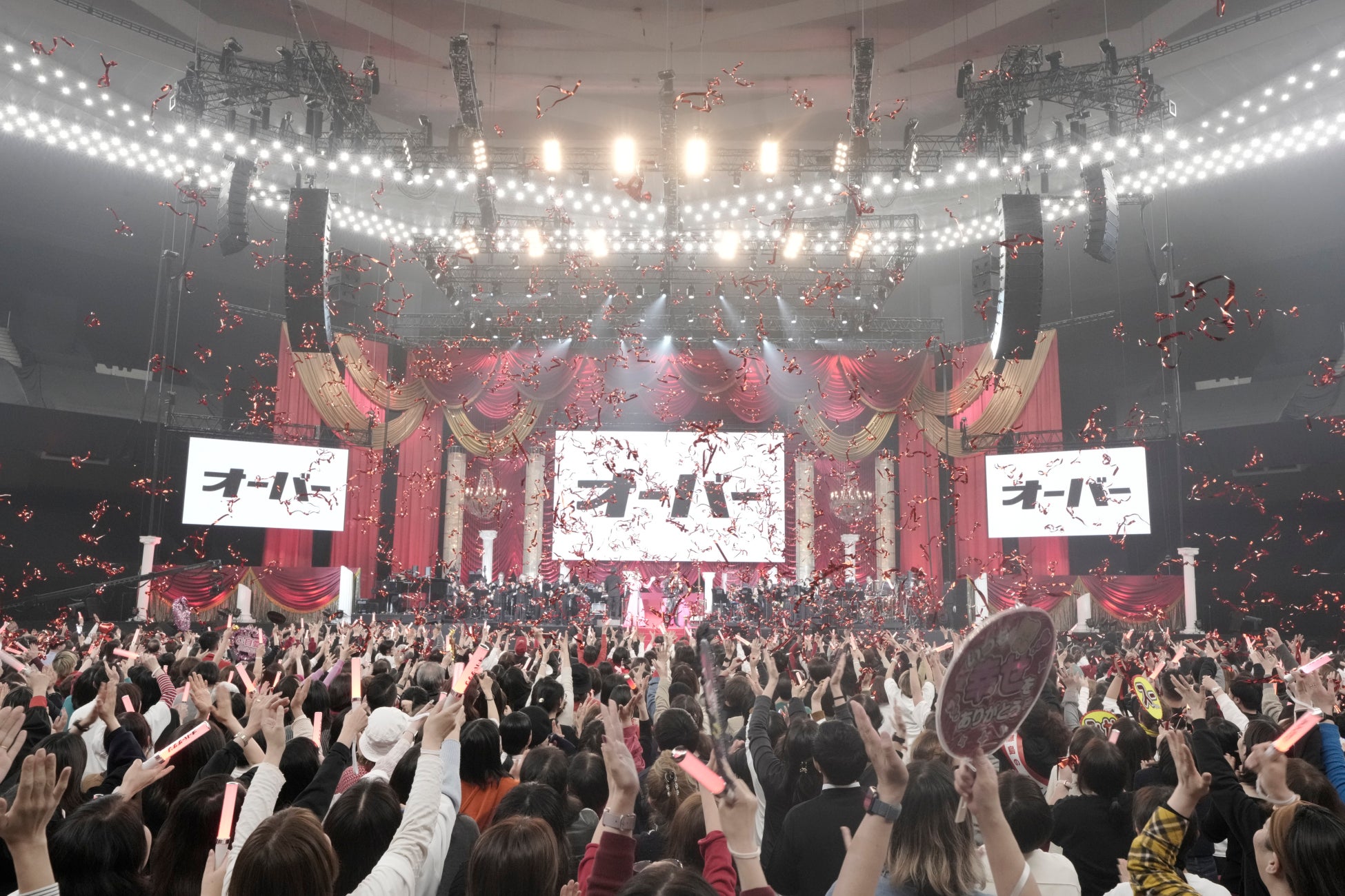 後半では、スーから互助会員の皆さまへ感謝をしたためた手紙を読み上げ、会場中もそれぞれの5年間を思い出し、涙をぬぐう場面も。様々な苦労を重ね『負けへんで』と踏ん張ってきた互助会員に、スーが力強くプリンセスプリンセスの『M』を歌い届け、客席も自然と大合唱。真っ赤なペンライトと歌声で会場がひとつになりました。