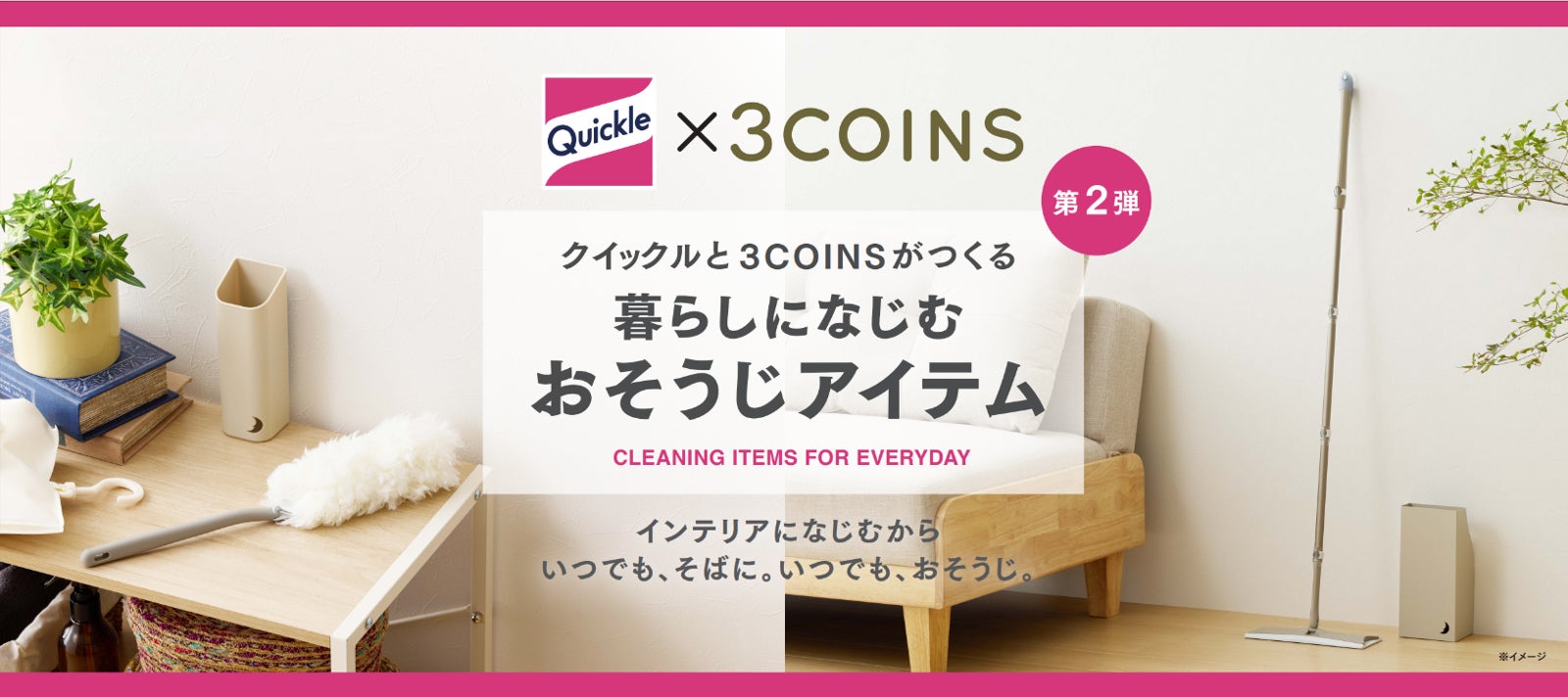 「クイックル」と「3COINS」とのコラボレーションは、2024年に続き2回目となります。昨年は『クイックル マグネットワイパー』のデザイン品を発売。“インテリアになじむデザインがおしゃれ“と、大変ご好評をいただきました。