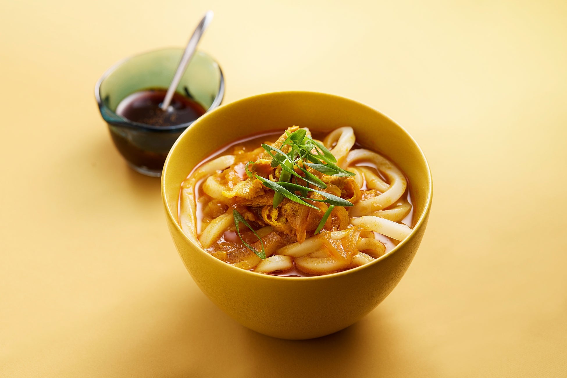 ・カレーうどん 麻辣黒胡麻七味オイル添え