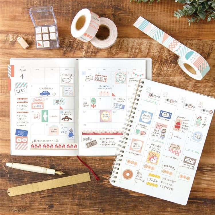 手帳のデコレーションなどに気兼ねなく使える、大容量で鮮やかな特色印刷が特徴のロール状シール。全9種類。