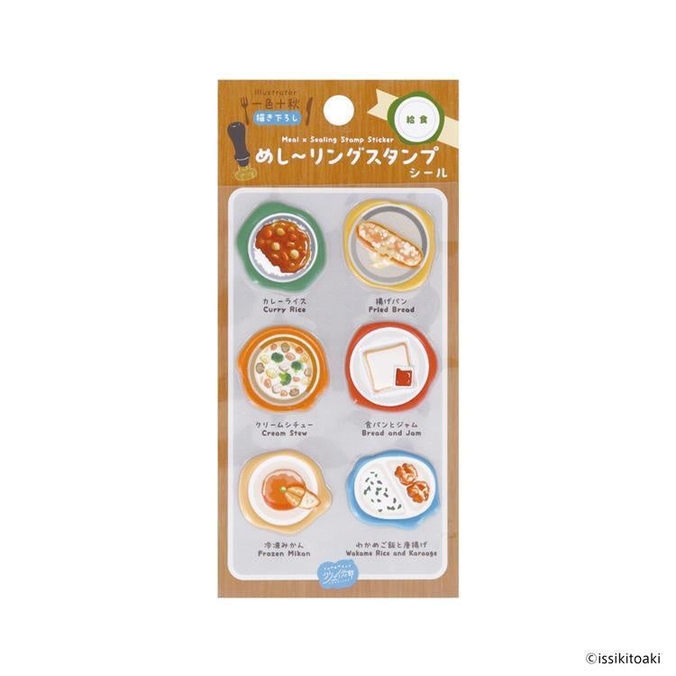 オムライスなどの料理の凹凸感を再現したシーリングスタンプシール。「給食」「中華」などの全6種類。