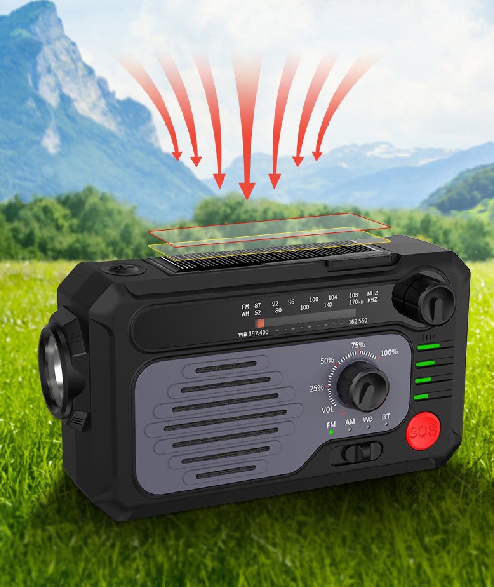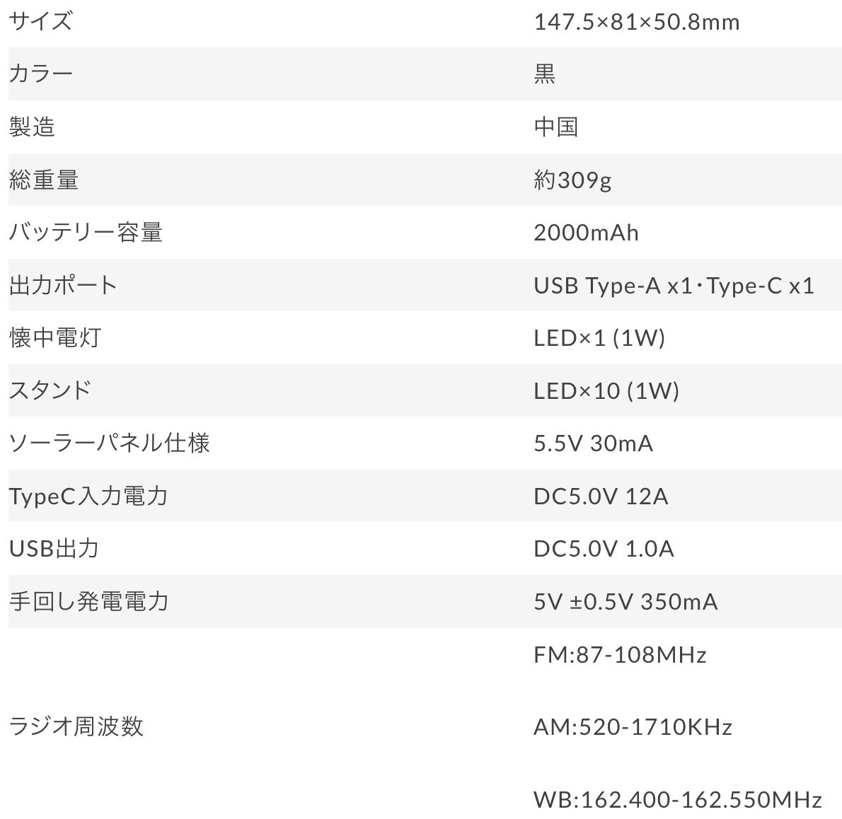 - ソーラーパネル+手回し発電で電源がない場所でも使用可能