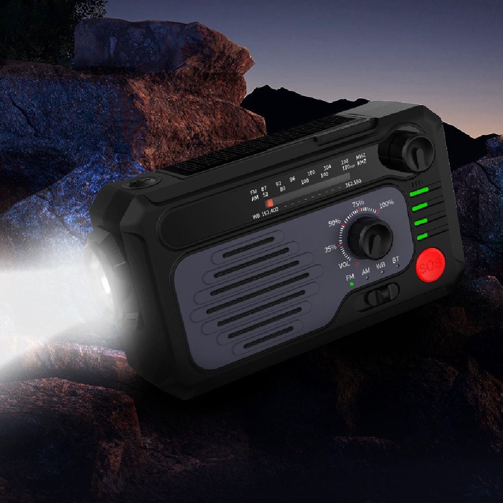 【手回し発電/ハイライトLED照明/Bluetoothスピーカー/ラジオ放送/SOS警報機能内蔵/2000mAhパワーバンク】