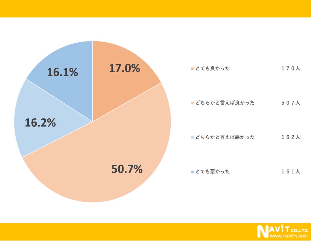 成人式に参加して良かったかどうかのアンケートの結果では「どちらかと言えば良かった」と回答された人が1番多く50.7%でした。また「とても良かった」と回答された人が17.0%で合計すると7割近くの人が成人式に参加して良かったと回答しています。