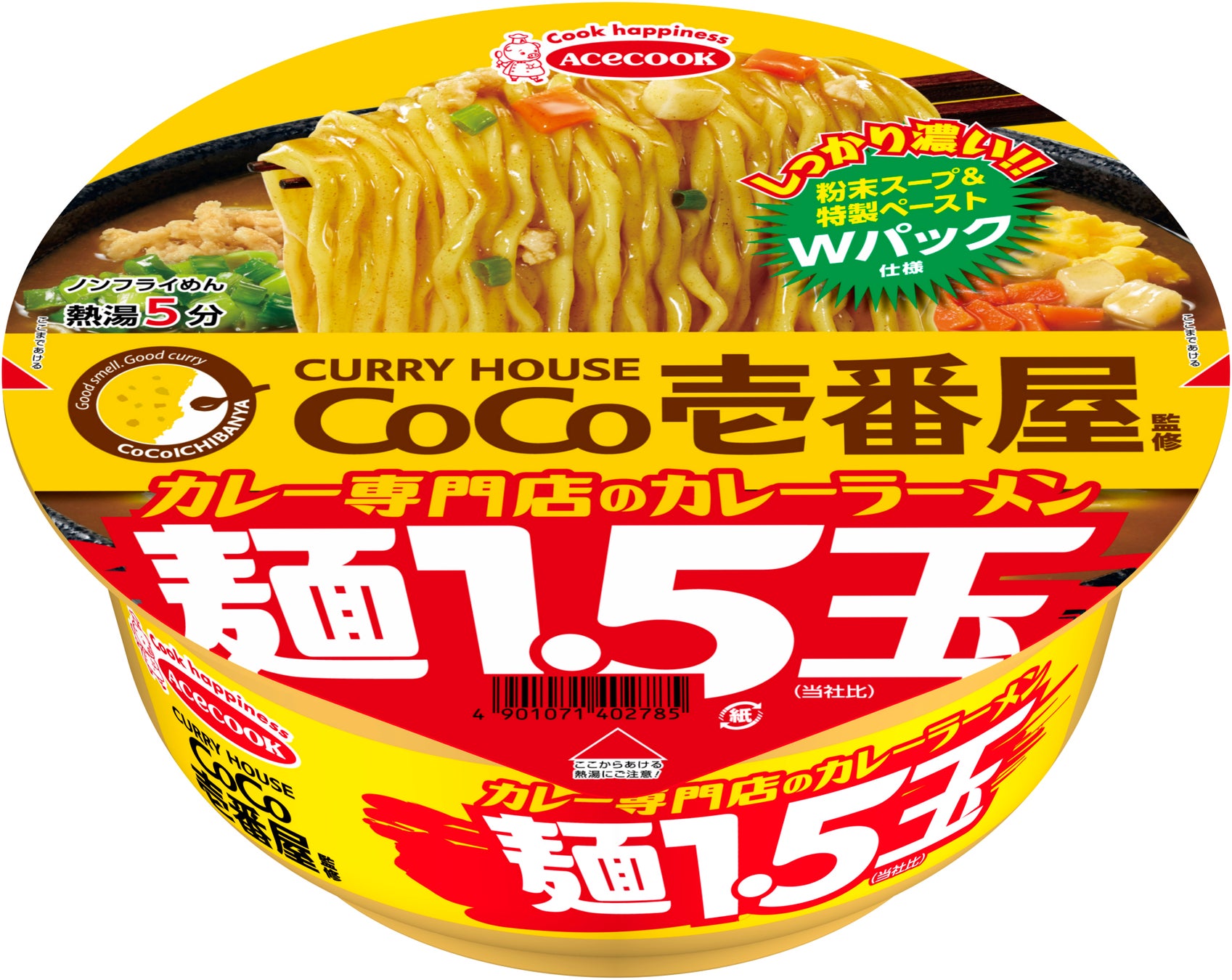 エースコック株式会社(本社:大阪府吹田市 代表取締役社長:村岡寛)は、2023年12月18日より、株式会社壱番屋(本社:愛知県一宮市 代表取締役社長:葛原守)とコラボレーションした、「CoCo壱番屋監修 カレー専門店のカレーラーメン 麺1.5玉」を新発売します。
