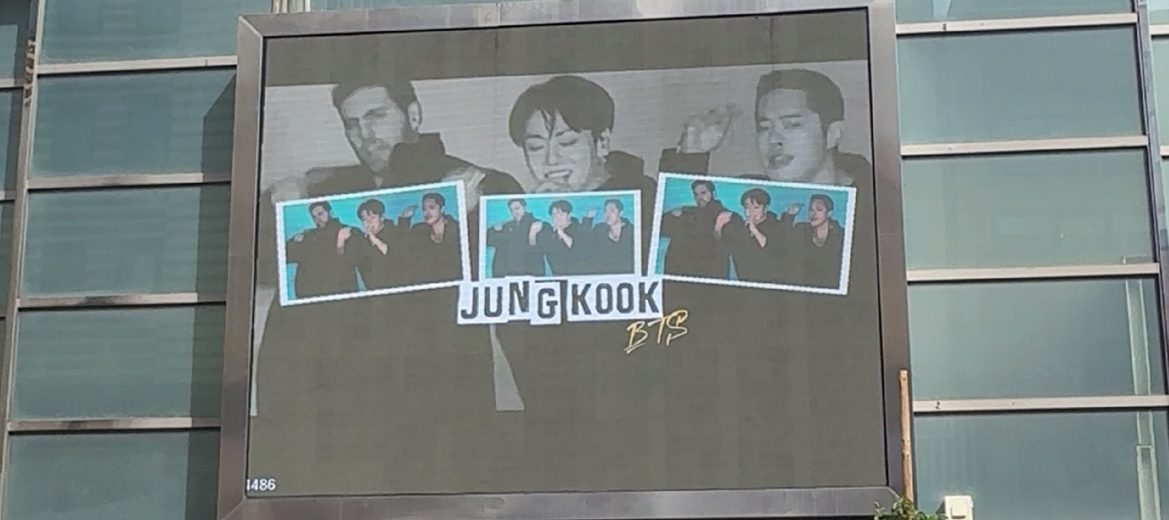 2025年9月15日(月)~9月21日(日)での期間で開催した「Kstyle×IDOLCHAMP特別企画【BEST DANCE CHALLENGE】ダンスチャレンジNo.1アイドルは誰?」の投票において1位に選ばれたBTSのJUNGKOOKさんの応援広告が、新大久保のK-PLAZA 1号館の屋外ビジョンで上映されております。
