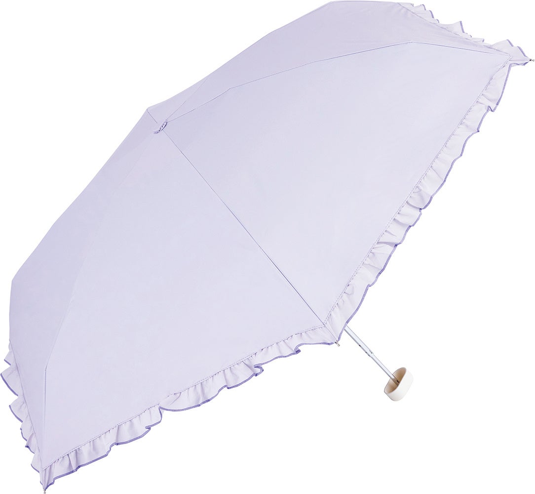 傘とポーチにフリルをあしらった折りたたみ傘。傘の出し入れがしやすい収納ポーチ付き。