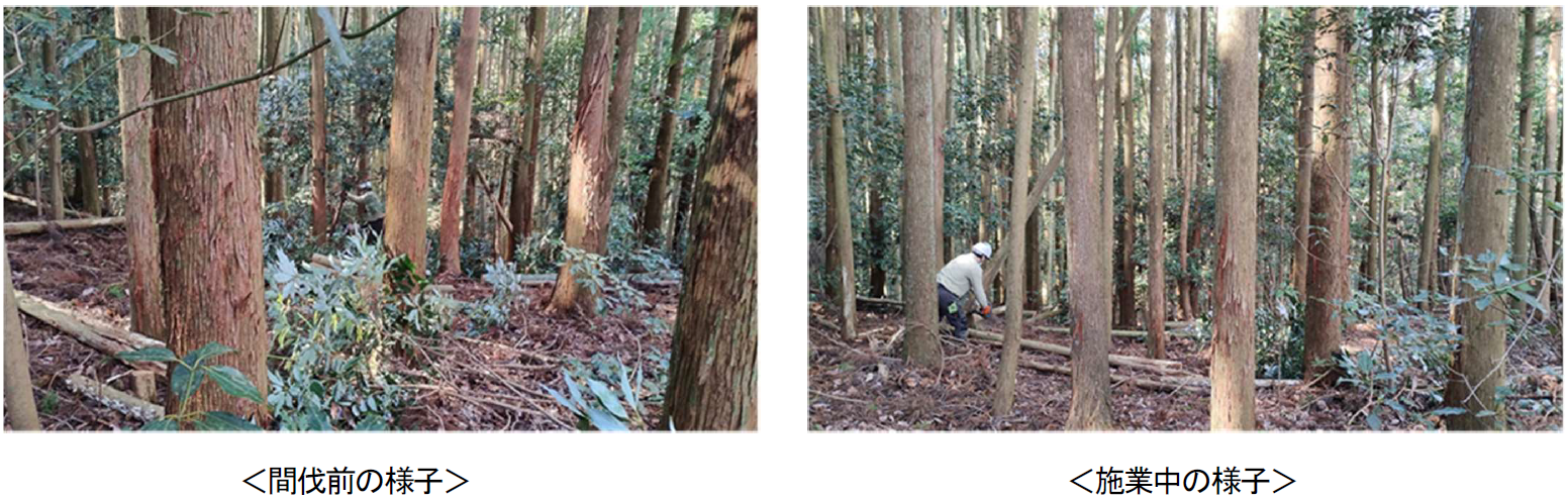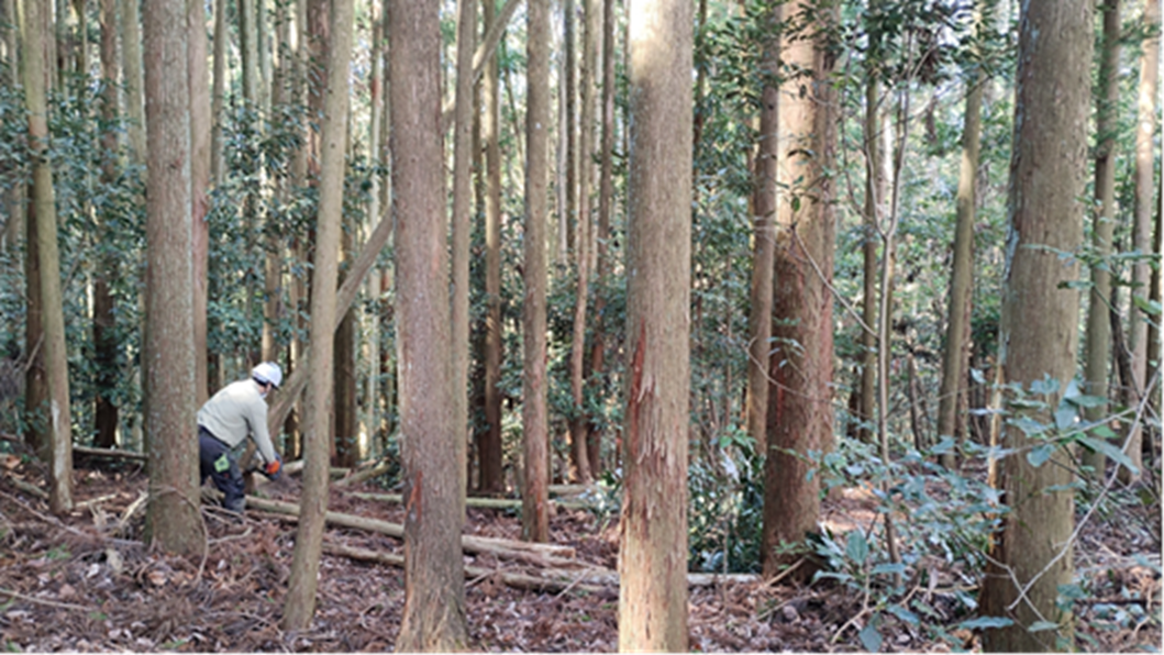 カーボンニュートラルにつながる活動として、和歌山県有田川町の森林の間伐(間引き)を実施