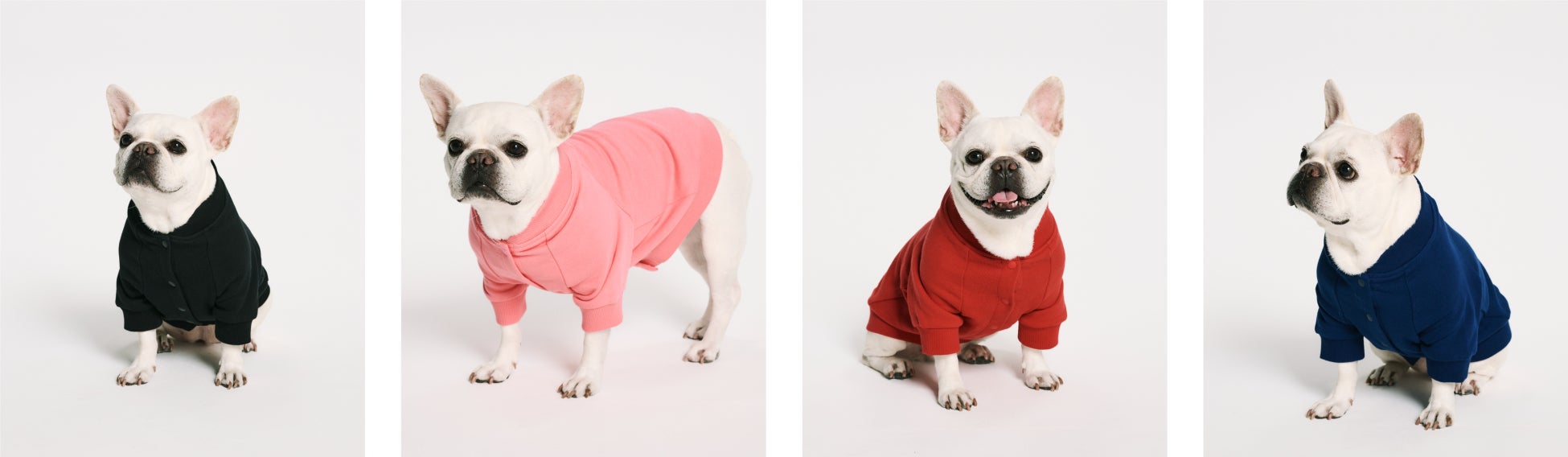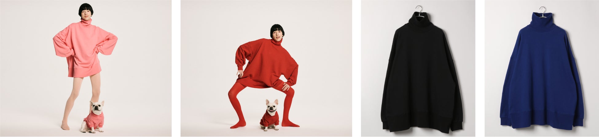 今回発売するコラボレーションアイテムはベーシックで飽きのこないデザインの中に、シルエットと色にこだわり愛犬とお揃いで着用していただけるスウェットと、DOGウェア限定で色展開にこだわったボーダー柄のタートルネックと冬のお散歩でも大活躍間違いなしのボアブルゾンをラインアップ。