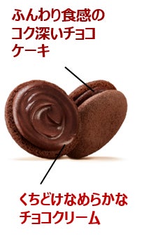 - ふんわりとした食感のコク深いチョコ生地で、なめらかなくちどけのチョコクリームをサンドしました。