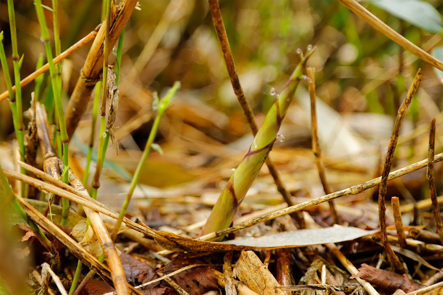 苗場地区では、根曲がり竹と呼ばれている山たけのこを採ることができます。根曲がり竹とは、チシマザサの若竹のことを指し、一般的なタケノコと言われている孟宗竹のタケノコと比べて細くてコリコリした食感が特徴的です。また、大がかりなたけのこ狩りのイメージとは違う、手軽にらくらく安心してたけのこを採ることができます。