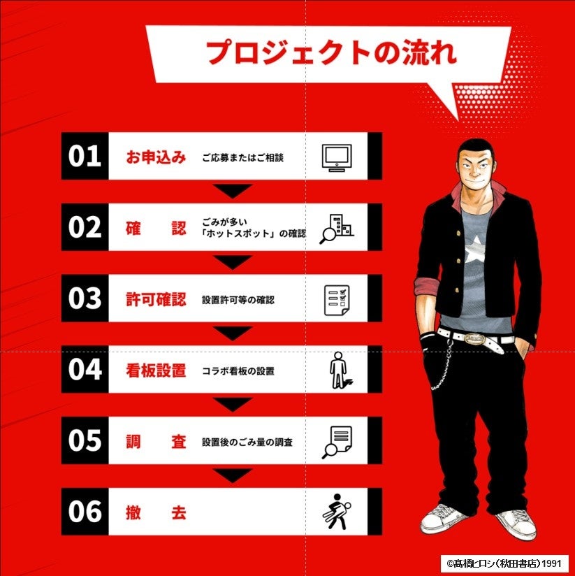 福島県会津坂下町出身の人気漫画家髙橋ヒロシ先生の大人気作品 クローズ×WORST とコラボレーションした海洋ごみ削減に向けた取り組みを昨年より進めています。今回、その推進を加速させるべく、特設webページを開設。連携いただける福島県内の各市町村や民間企業、ボランティア団体、教育機関などからご応募いただき、街や道路でポイ捨てが多い地点にコラボ看板を設置して、ごみのポイ捨て抑止のメッセージを届けます。また、この取り組みは街の美化とごみ問題の解決だけでなく、地域の魅力向上にも寄与することが期待されています。