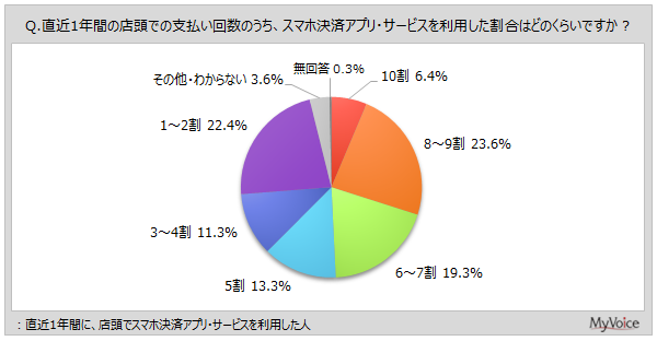 直近1年間に店頭でスマホ決済アプリ・サービスを利用した人に、利用した頻度や割合を聞きました。