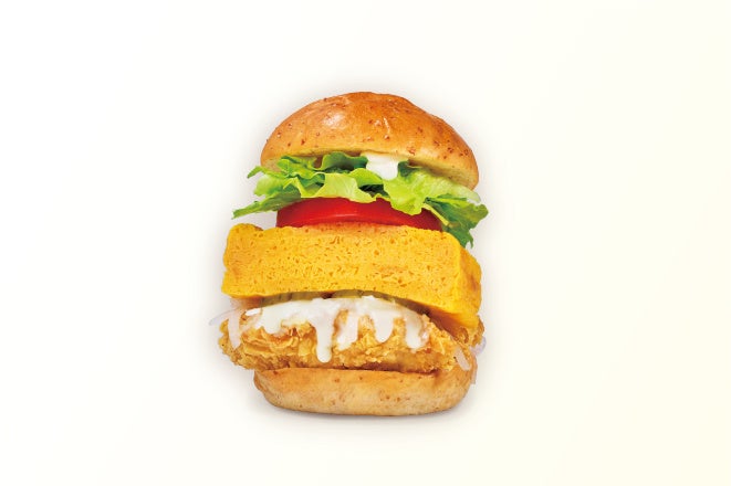 「厚焼き玉子チキンバーガー」は、だしの旨味と程よい甘みが広がる厚焼き玉子に、ジューシーなチキンを組み合わせた一品。ふっくらとした食感とやさしい味わいが特徴で、わさびソースをあわせることでこれまでにない和風テイストのチキンバーガーとしてお楽しみいただけます。